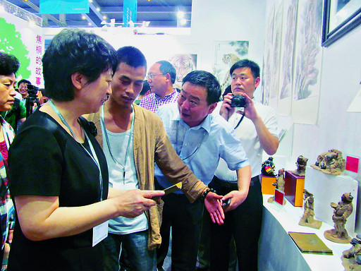 趙素萍對我市展出的泥塑、泥咕咕、裸眼3D產(chǎn)品、動漫短片等表現(xiàn)出濃厚的興趣,希望參展企業(yè)在宣傳推介文化產(chǎn)品的同時,積極學習外地在文化產(chǎn)業(yè)發(fā)展方面的經(jīng)驗和做法,不斷完善提升,為我市乃至全省文化產(chǎn)業(yè)的大發(fā)展大繁榮提供強有力的支持。在河南三陽光電有限公司展臺處,趙素萍觀看了裸眼3D產(chǎn)品展示,認為該項目科技含量高、市場潛力大,鼓勵企業(yè)加快開發(fā)更舒適、更逼真的產(chǎn)品,早日實現(xiàn)產(chǎn)品進入家庭的目標。在魂子泥塑藝術(shù)有限公司展臺處,趙素萍認真察看該公司的展品,并與公司負責人、河南民間工藝美術(shù)大師宋慶春親切交談,鼓勵他進一步將傳統(tǒng)文化與現(xiàn)代創(chuàng)意相融合,做出更多更好的工藝品。趙素萍還觀看了市華寶動漫有限公司出品的動漫短片《小鶴仙與大水怪》,對該公司的創(chuàng)意及制作水平給予充分肯定。