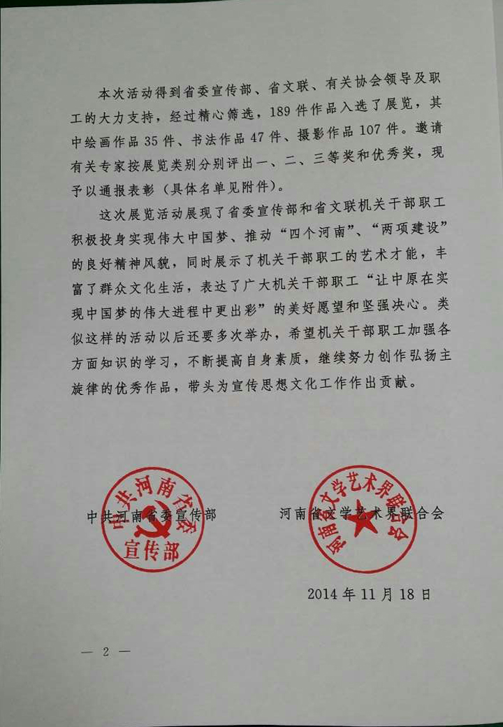 及文明河南建設(shè)書(shū)畫(huà)攝影展的表彰通報(bào)
