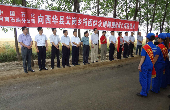 這次捐贈活動為西華縣艾崗鄉(xiāng)半截樓村群眾免費送來了10噸柴油,平均每臺收割機50升。這也是省委宣傳部聯(lián)合中石化河南石油分公司連續(xù)5年開展這項活動。5年來,為駐村群眾免費送油共計50噸。在活動現(xiàn)場,中石化的加油車為十幾臺收割機免費加了“愛心油”,并送給村民每人一個裝有汗衫、毛巾和手套的“愛心禮包”,有效地解決了困難群眾最關(guān)心、最急需的麥收用油問題,服務群眾、支援三夏走完最后一公里。三夏志愿服務隊員莊嚴承諾,為顆粒歸倉、豐產(chǎn)豐收提供最便利、最高效的服務。劉國明副巡視員在致辭詞中轉(zhuǎn)達了部領(lǐng)導對駐村幫扶點半截樓村群眾的問候,對中石化河南石油分公司履行國企職責,積極開展“石油惠農(nóng)服務優(yōu),支援三夏促豐收”扶貧濟困的愛心行動表示贊賞和感謝。劉國明副視員要求駐村工作隊,三夏期間繼續(xù)加大幫扶力度,對因病致貧、致寡家庭、軍烈屬、外出務工農(nóng)戶,組織青年志愿者無償幫扶收麥。呼吁社會各界樹立公益愛心理念,傳遞社會正能量,積極開展城市反哺農(nóng)村,企業(yè)支持農(nóng)業(yè),市民關(guān)愛農(nóng)民等活動,為早日建成美麗鄉(xiāng)村助一臂之力。(駐村工作隊)