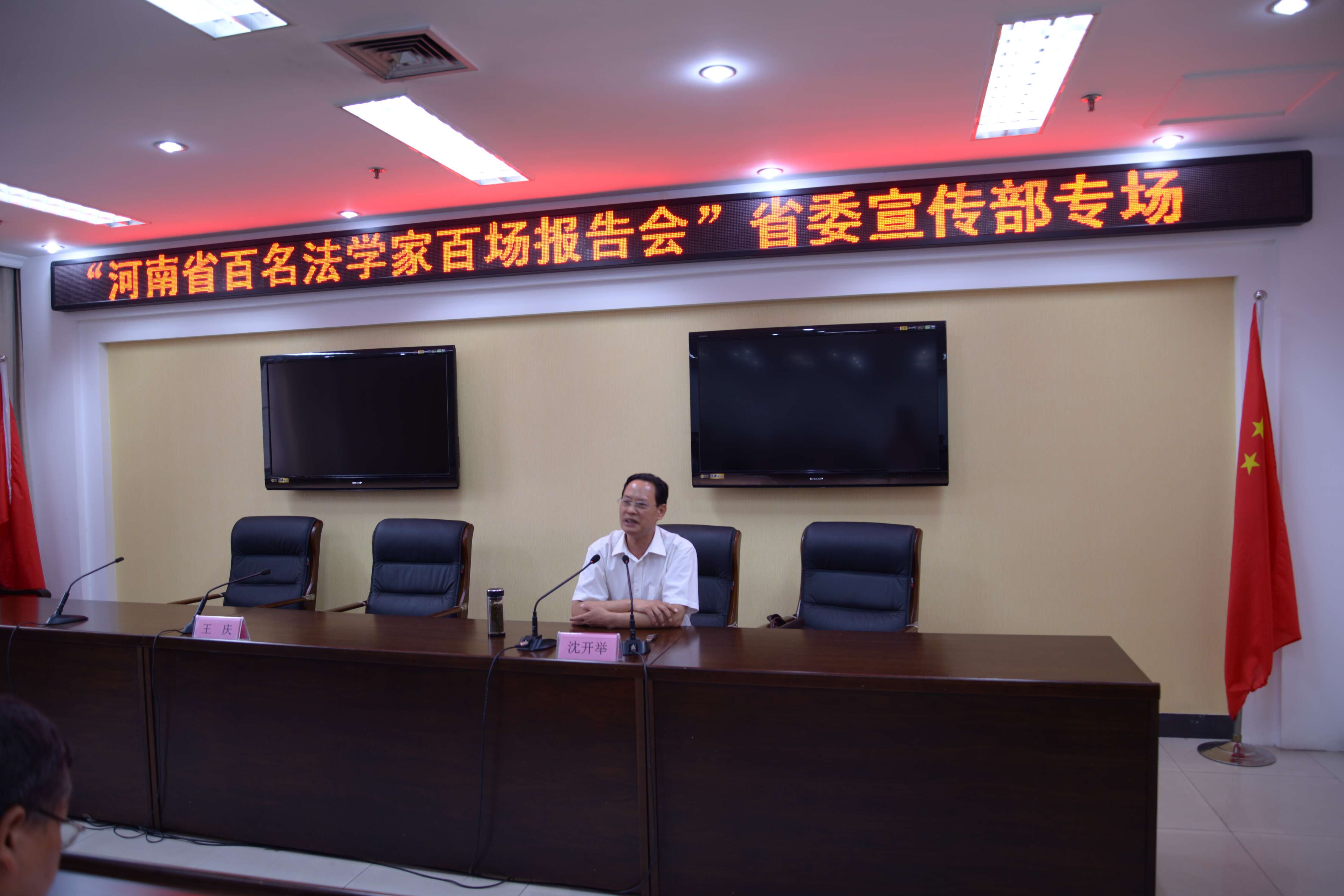 為更好地把握依法治國與加強黨的領(lǐng)導(dǎo)的關(guān)系,明確宣傳思想文化工作在推進依法治國中的責任,根據(jù)省委組織部、宣傳部、政法委等聯(lián)合下發(fā)的《2015年河南省“百名法學(xué)家百場報告會”法治宣講活動實施方案》,省委宣傳部機關(guān)于2015年8月14日(周五)下午舉行了“河南省百名法學(xué)家百場報告會”省委宣傳部專場。