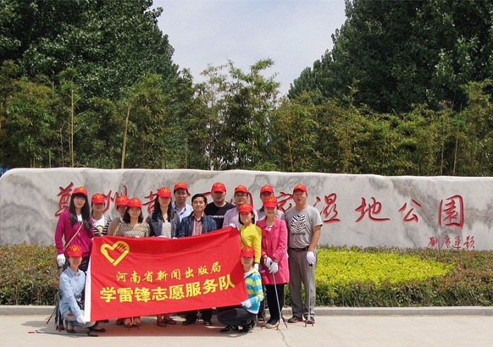 為大力踐行社會主義核心價值觀,引導局直系統(tǒng)黨員干部帶頭“做文明人、辦文明事”,五一小長假后的第一天,省新聞出版局15名青年志愿者在局直機關黨委專職副書記張培明同志的帶領下,一起到黃河濕地公園開展了“傳承五四薪火•志愿潔凈家園”清撿垃圾活動。經(jīng)和有關工作人員溝通,我們將活動的重點區(qū)域定在平日清潔人員疏于打掃的大道附近的草叢樹林里。志愿者們領到工具后,兩人一組,三人一隊,發(fā)揚不怕臟、不怕累的精神,默契配合,清理的垃圾裝滿了數(shù)十個蛇皮袋。
